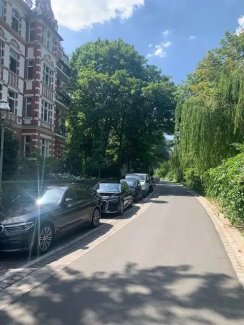 begrünte kleine Anwohner-/Fahrradstrasse (Einbahnstr.) entlang